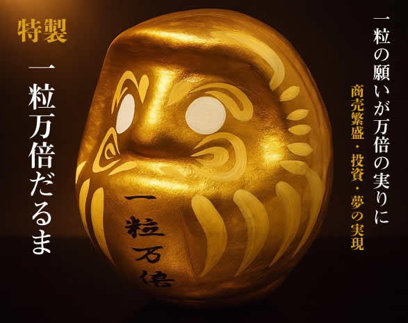 「一粒の種が万倍に実る」——そんな縁起の良い日、「一粒万倍日」にちなんで生まれた【一粒万倍だるま】。こちらは特に金運・商売繁盛・成功運にご利益があるとされる【金色モデル】です。輝く金色は、まさに繁栄と富の象徴。